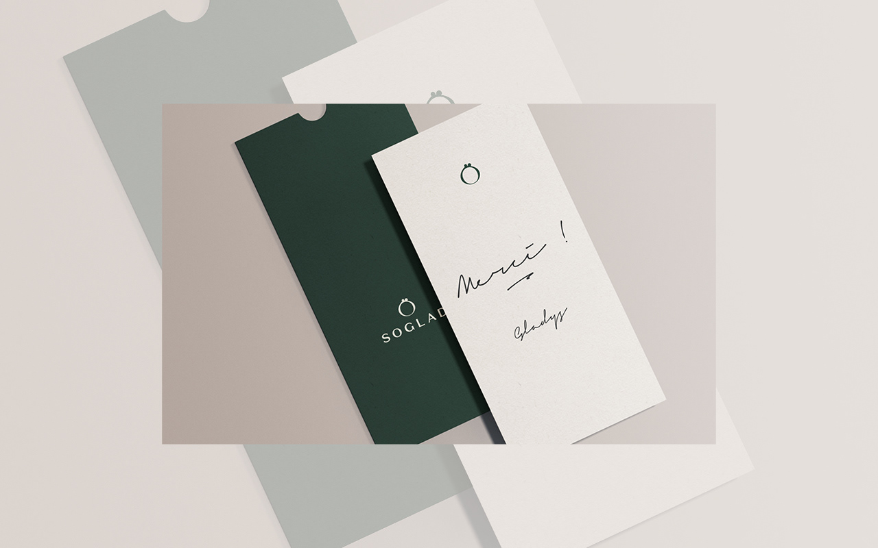 Le logotype de Soglad se déploie autour d’un symbole simple et évocateur, pensé comme une empreinte visuelle du geste de création.